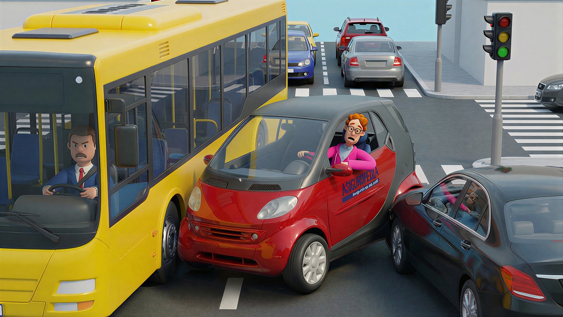Un taximetrist aflat pe banda a doua a anticipat ce urma să fac și a reușit să mă evite în ultimul moment. Din păcate, nu la fel de norocos a fost șoferul unui autobuz care circula regulamentar pe banda întâi. Am ajuns direct în aripa lui. Impactul nu a fost grav – o tamponare ușoară – dar suficient cât să atragă atenția tuturor. Eu, roșu la față de nervi și rușine, a trebuit să gestionez situația.