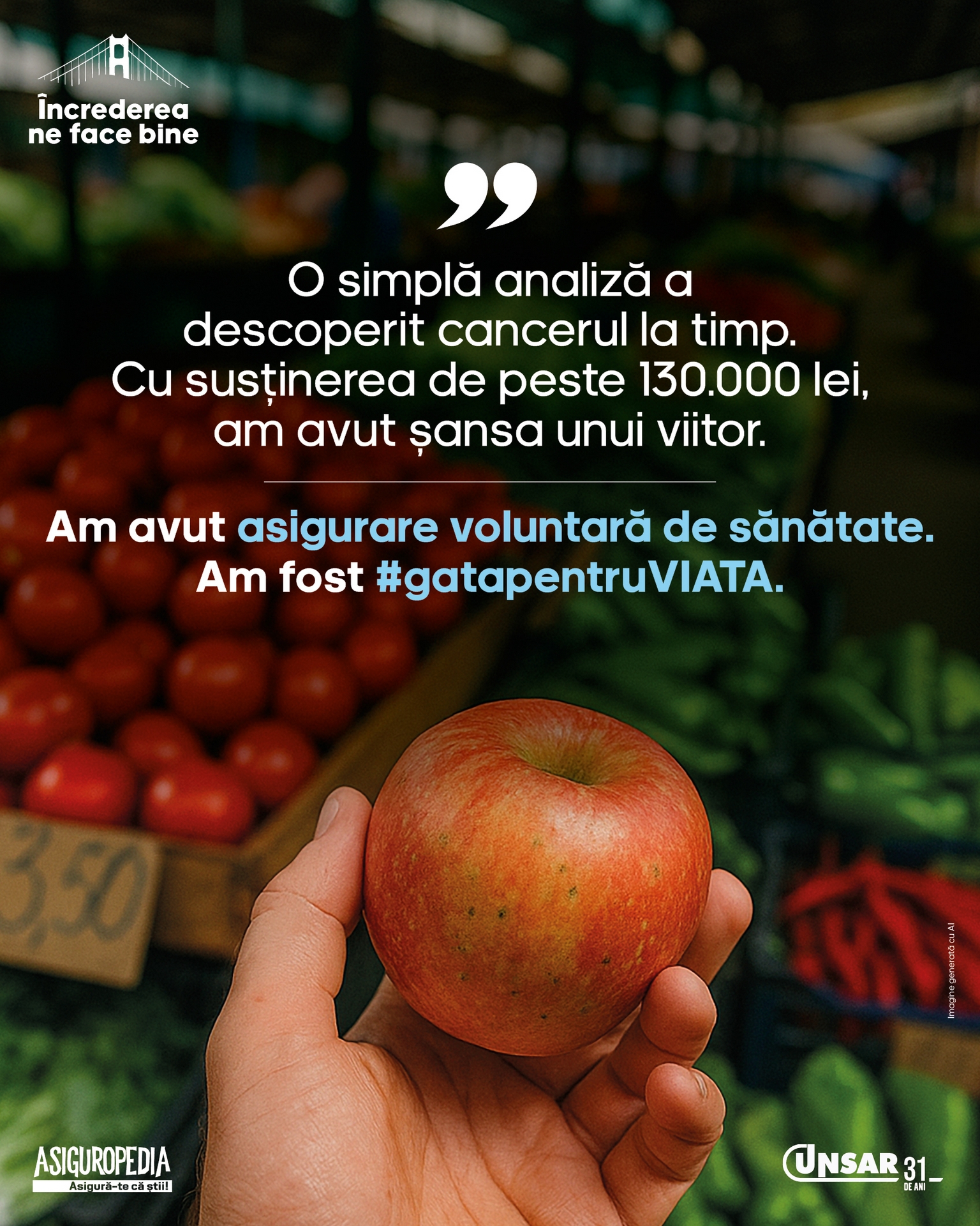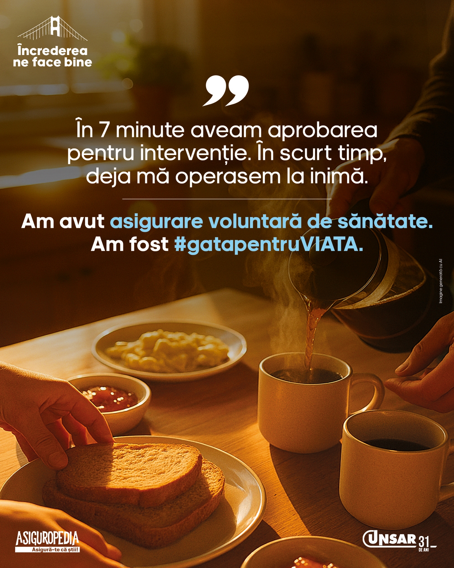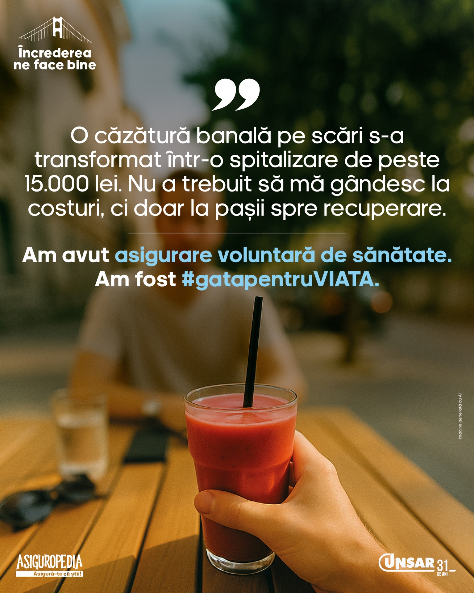 Împărtășește într-un comentariu scris sau video înregistrat cum te-a ajutat o asigurare voluntară de sănătate în momente importante sau împărtășește ce îți dă sentimentul că tu și familia ta sunteți în siguranță și folosește hashtagul #gatapentruVIATA. Mărturia ta îi poate inspira pe alții să fie mai încrezători și mai bine pregătiți!